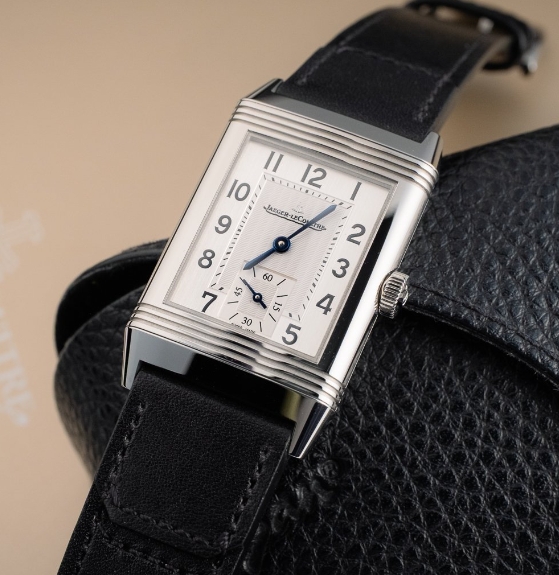 ジャガー ルクルト レベルソシリーズは、当初はスポーツウォッチとして発売されました。しかし、そクラシックなデザインから、ドレスウォッチとして分類されることも少なくありません。この点が、タンク・アメリカンに対するレベルソの大きな利点だと思います。カーサ・ファリアーノがデザインした、よりスポーティなレザーとキャンバスのストラップを組み合わせることで、レベルソをカジュアルな普段使い時計へと変身させることができます。もちろん、フォーマルなストラップと組み合わせて、よりエレガントな装いにすることも可能です。